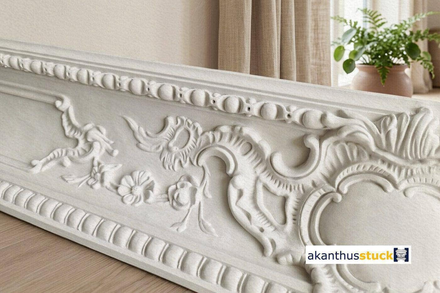 Bei Akanthus Berlin setzen wir konsequent auf echten Gipsstuck. Im Gegensatz zu Styropor- oder Polyurethan-Imitaten bietet echter Gips entscheidene Vorteile: