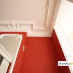 Dort wurde an der Wand, statt einem kompletten Eckgesimses, umlaufend nur der Akanthusstab verbaut.