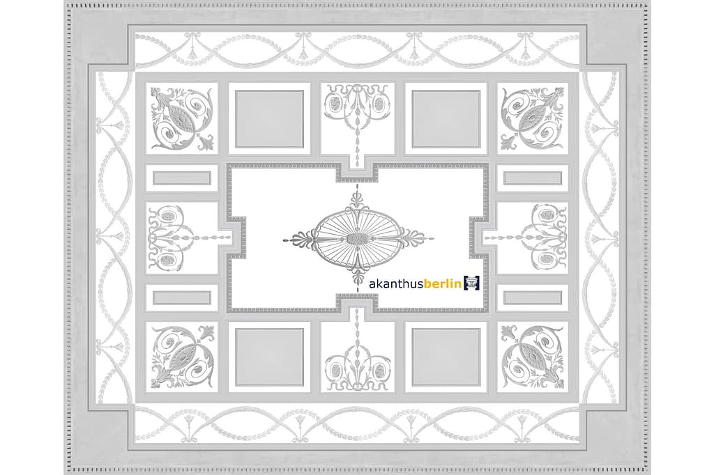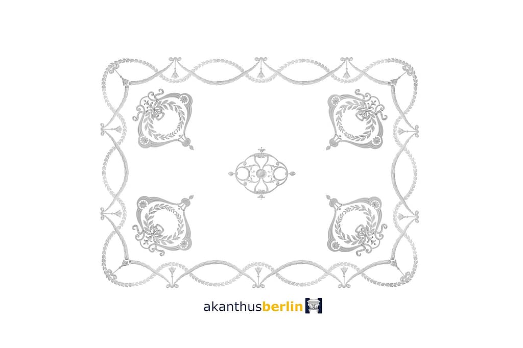 Die Ornamentik des Deckenbildes DB 60-1 ist auf einer Gipskartonplattenstärke von 1,25 cm aufgesetzt.