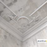 In der Stuckdecke DS 36, im gotischen Stil, finden Sie alle Elemente einschließlich einem Eckgesims als Darstellung wieder: