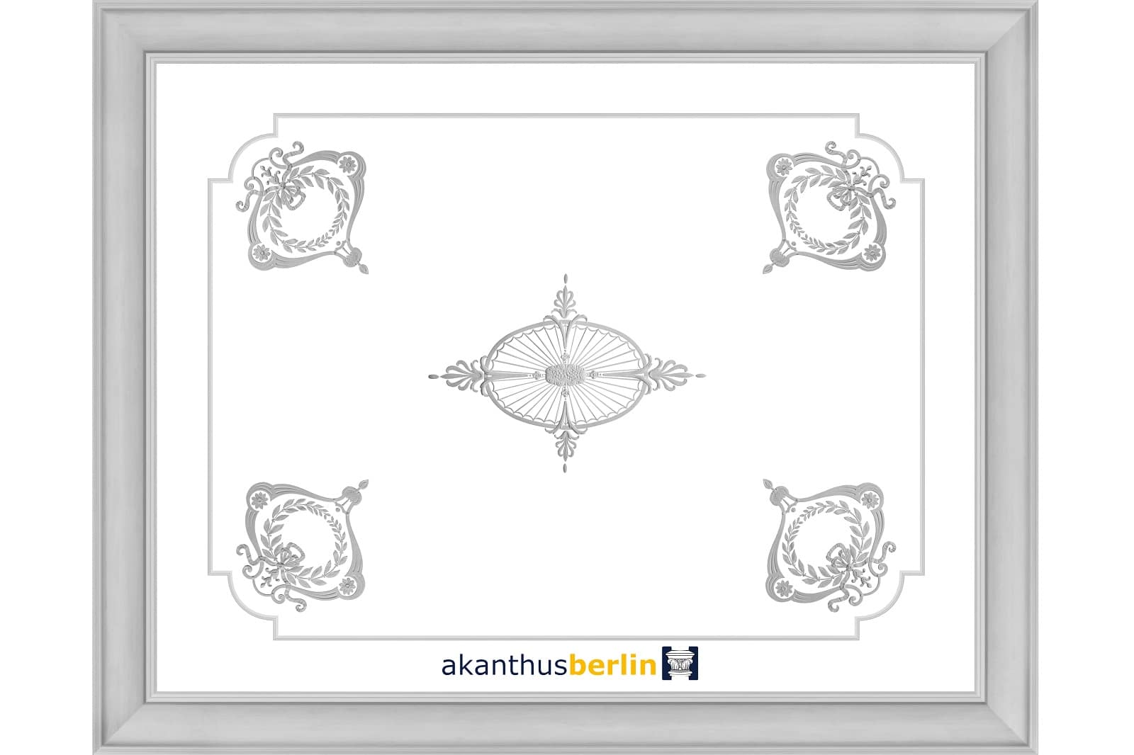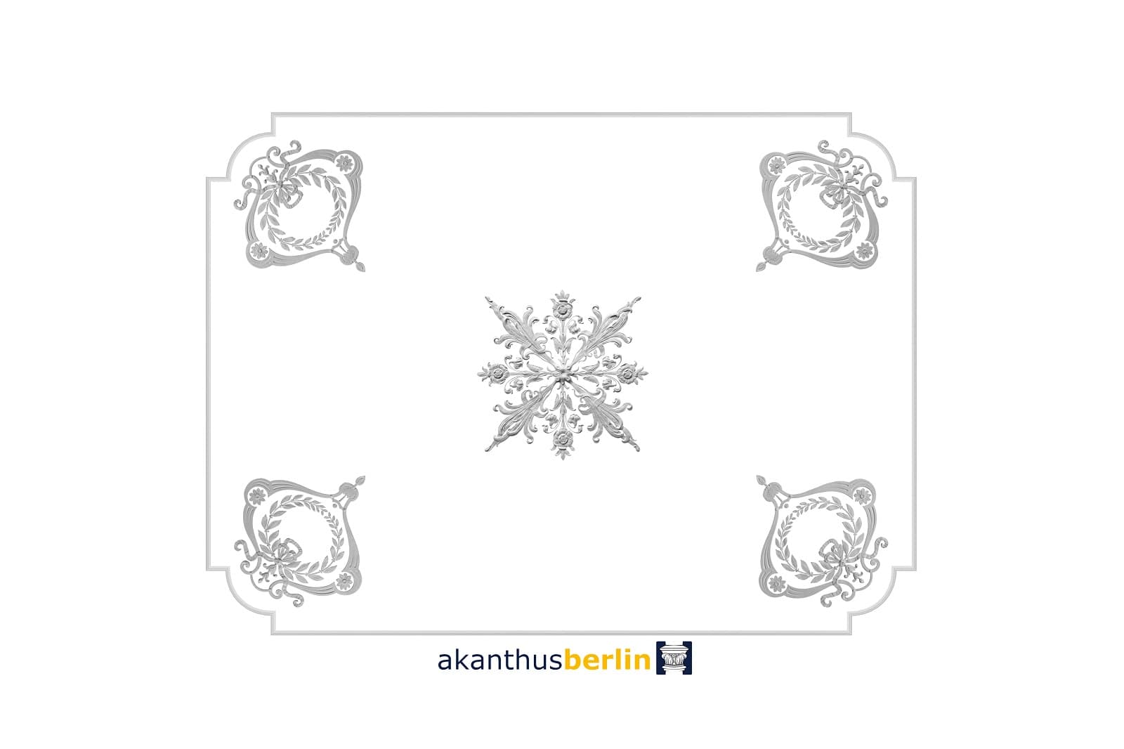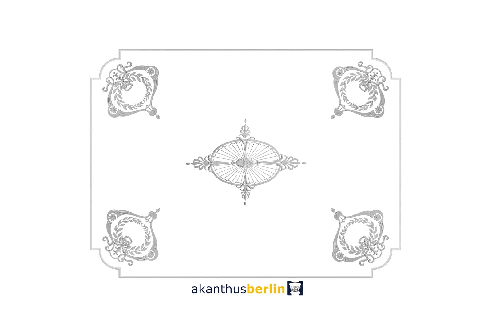 Dieses Mittelstück ist passgenau zum Deckenbild DB 60-1 und unterbricht samt den Lauf der Girlandenornamentik.
