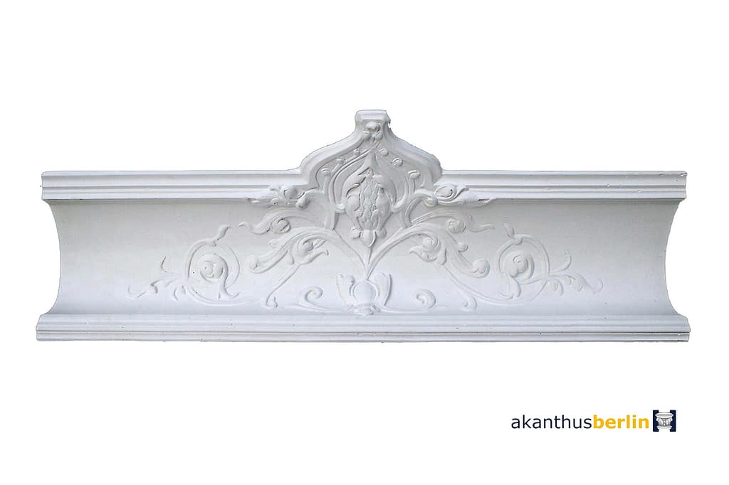 Unser Gotischer Deckenspiegel aus der Stuckdecke DS 36, zusammen mit den Eckgesimsen des Schloss Reichenow.