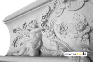 Im ornamentierten Mittel-Element finden wir zwei filigran ausgearbeitete Putten,