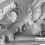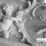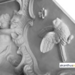 Bei unserem dritten Element, aus der David Bowie Decke, wird die Kartusche nicht allein von Rocaillen und den filigran ausgearbeiteten Putten umspielt, sondern zusätzlich von einem Schmetterling und einem Vogelpaar ergänzt.