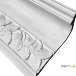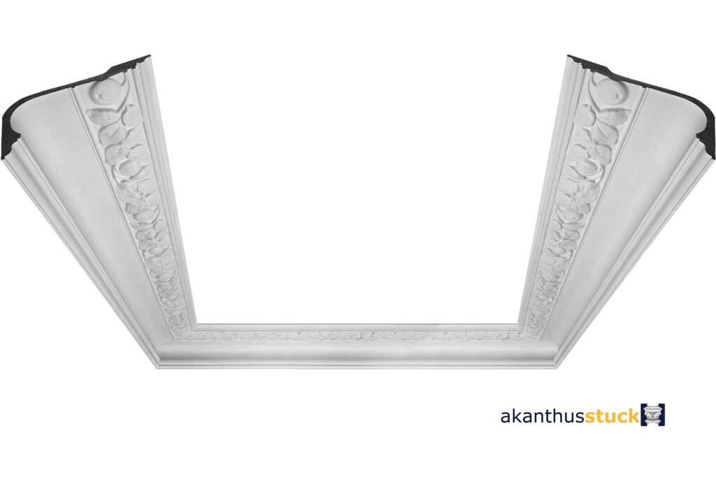 Mit dem Eckgesims EC 59-1, der profilierten Hohlkehle, ist es möglich den Raum nicht allein umlaufend mit der Blätterranke umspielen zu lassen, sondern ruhige Punkte mit der alleinigen Profilierung einzubauen.