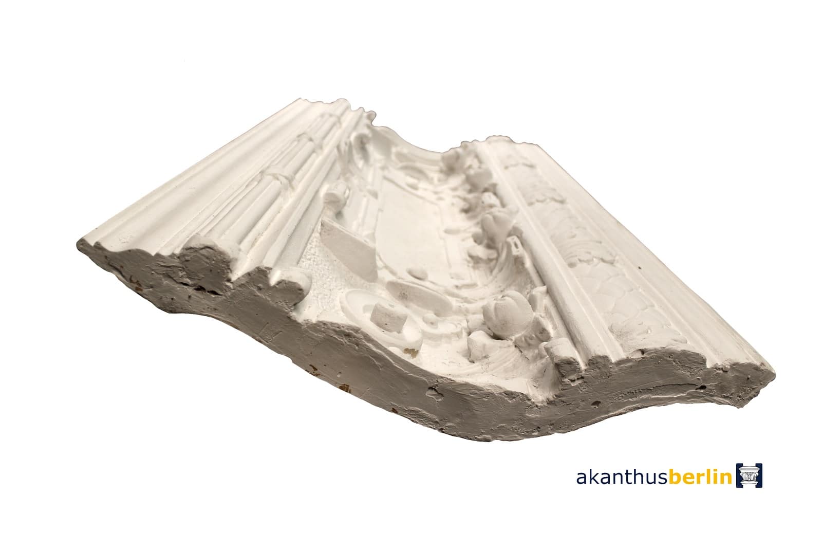 Zusätzlich wird das Eckgesims von Zierschuppen, Akanthusblättern und tulpenähnlichen Blütenköpfen verziert.