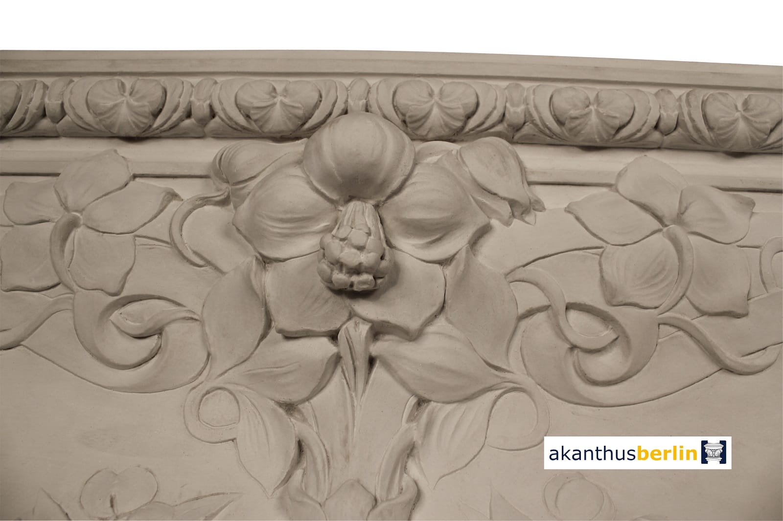 Das Gesims EC 22 greift die dekorativ geschwungene Linien aus dem Jugendstil auf und verwendet großzügig floare Motive.
