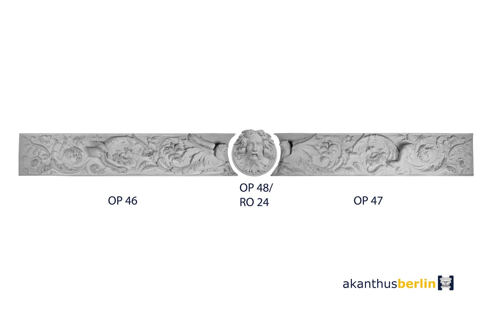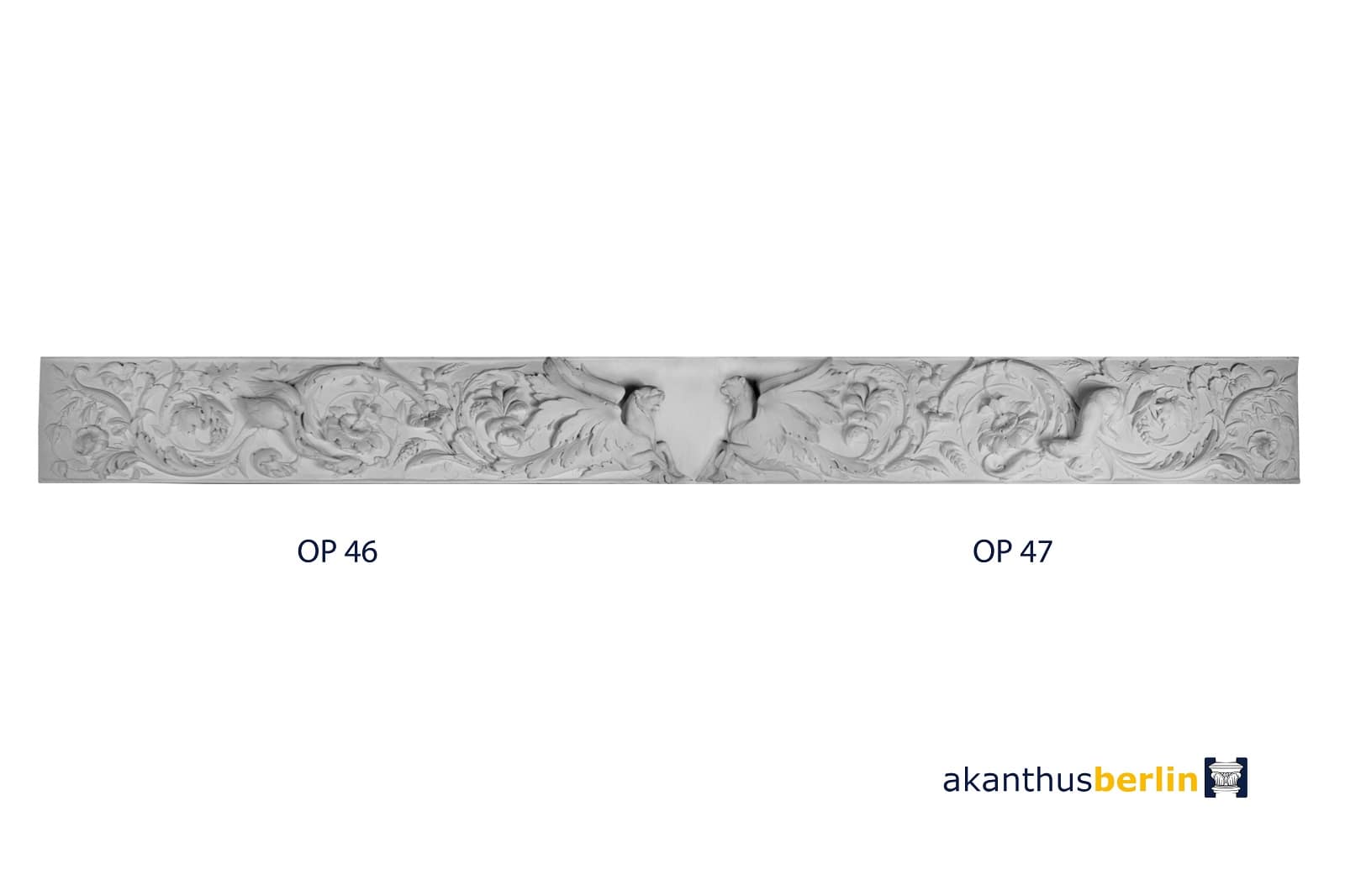 Die Ornamentplatte OP 47 ist die rechte Seite zum 3-teiligen Relief und gehört zu den übrigen Elementen OP 46 und OP 48.