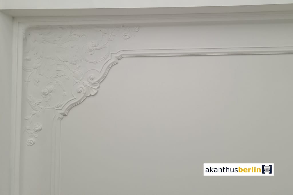 Die ornamentierte Ecke EC 10 ist das Verbindungselement zur glatten profilierten Hohlkehle EC 79.