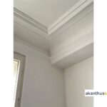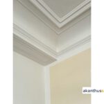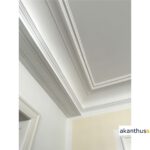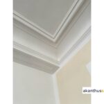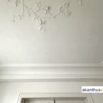 Beide Stuckteile, Profil PR 23 und Deckenbild DB 46, werden eingelassen in die Decke montiert.
