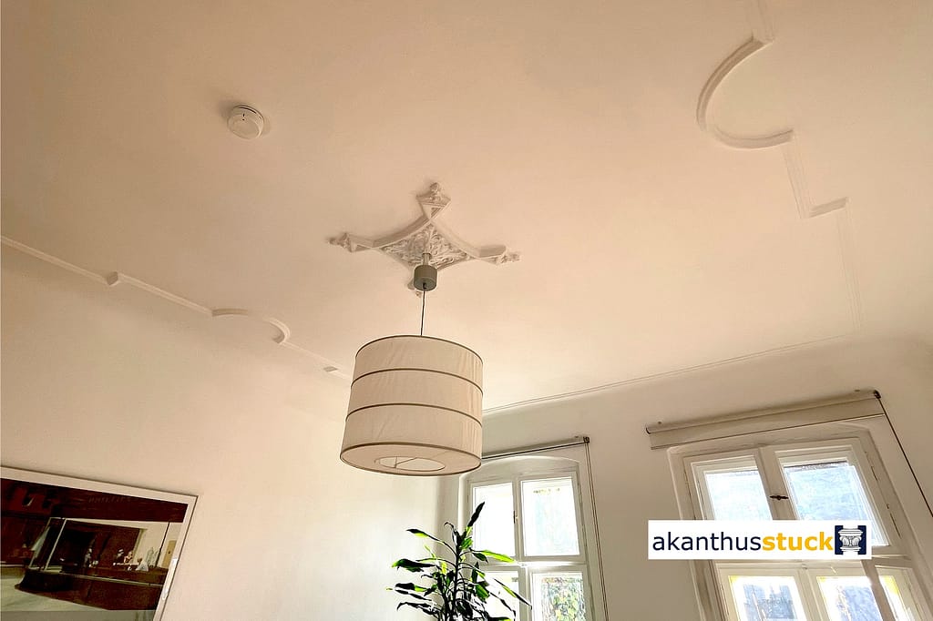 Eine Ergänzung zu einer Vielzahl an Eckgesimsen, aus unserer „Schloss Reichenow Serie“, ist unsere Rosette RO 06. Die im Gästezimmer des Schloss Reichenow ihren Ursprung fand.