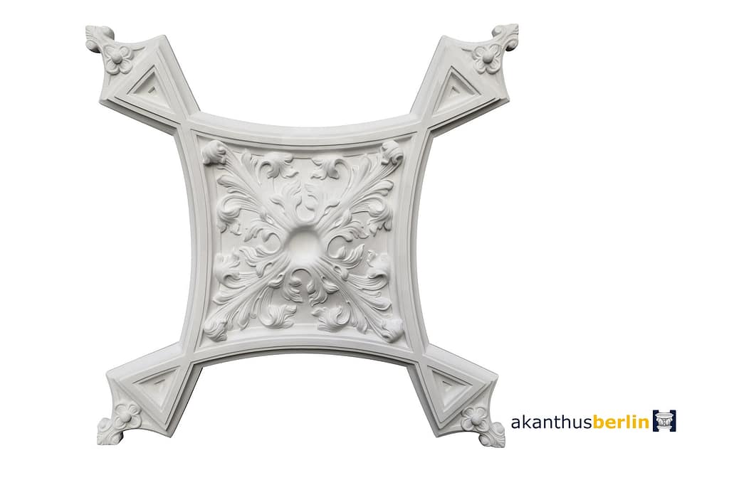 Diese Rosette RO 23 Gästezimmer ist eine Ergänzung zu einer Vielzahl an Eckgesimsen unserer „Schloss Reichenow Serie“.
