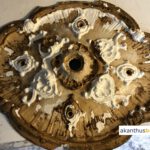 Die Farbanstriche werden von dem Stuckelement entfernt,