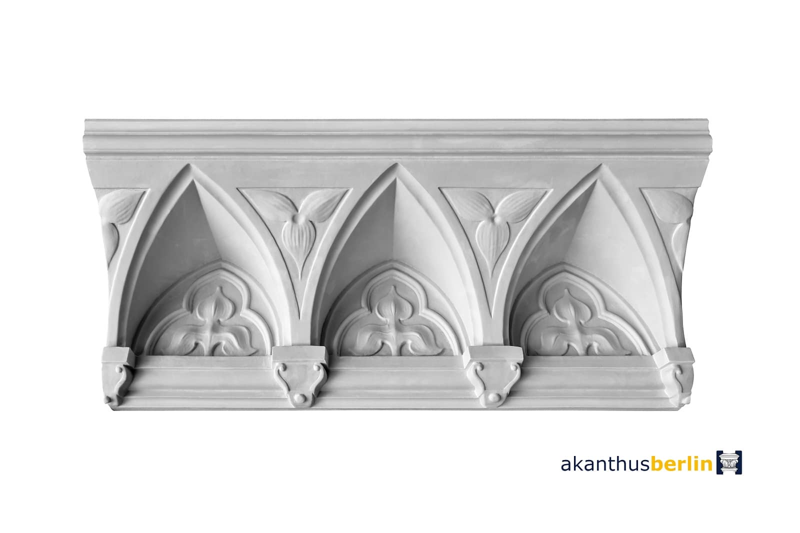 Dieses Dreiblatt findet sich auf diesem Eckgesims in einer symmetrischen Anordnung wieder,
