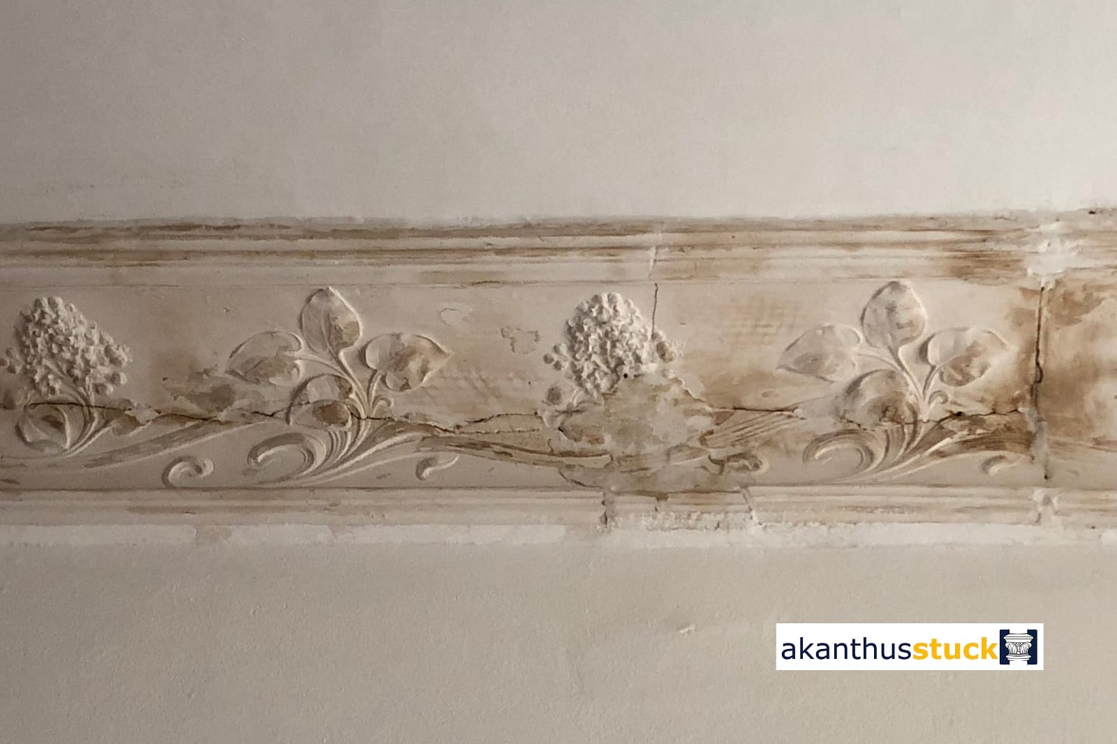 Beschädigter Stuck ist in Berliner Altbauten keine Seltenheit. Oft verursacht durch Wasserschäden, unsachgemäße Modernisierungen oder Erschütterungen.