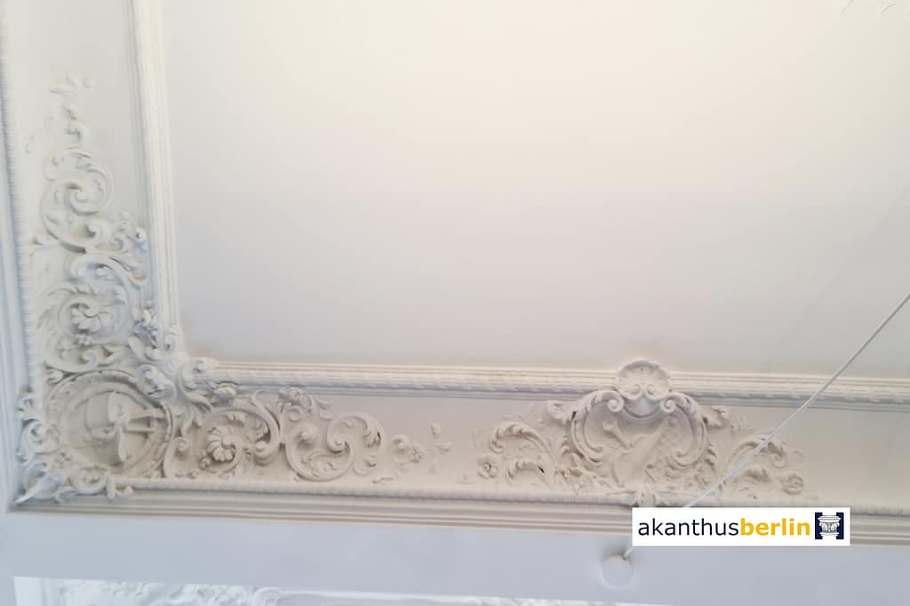 Die Stuckdecke DS 16 – Musikinstrumente – stammt ursprünglich aus der Westend Villa in Berlin.